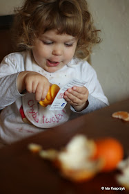 - O, siusiu! Bawoo!! - Rózia klaszcze z rozmachem, po czym każde mi szybko się odsunąć, bo musi przecież spuścić wodę ("Ja pućsić!!").